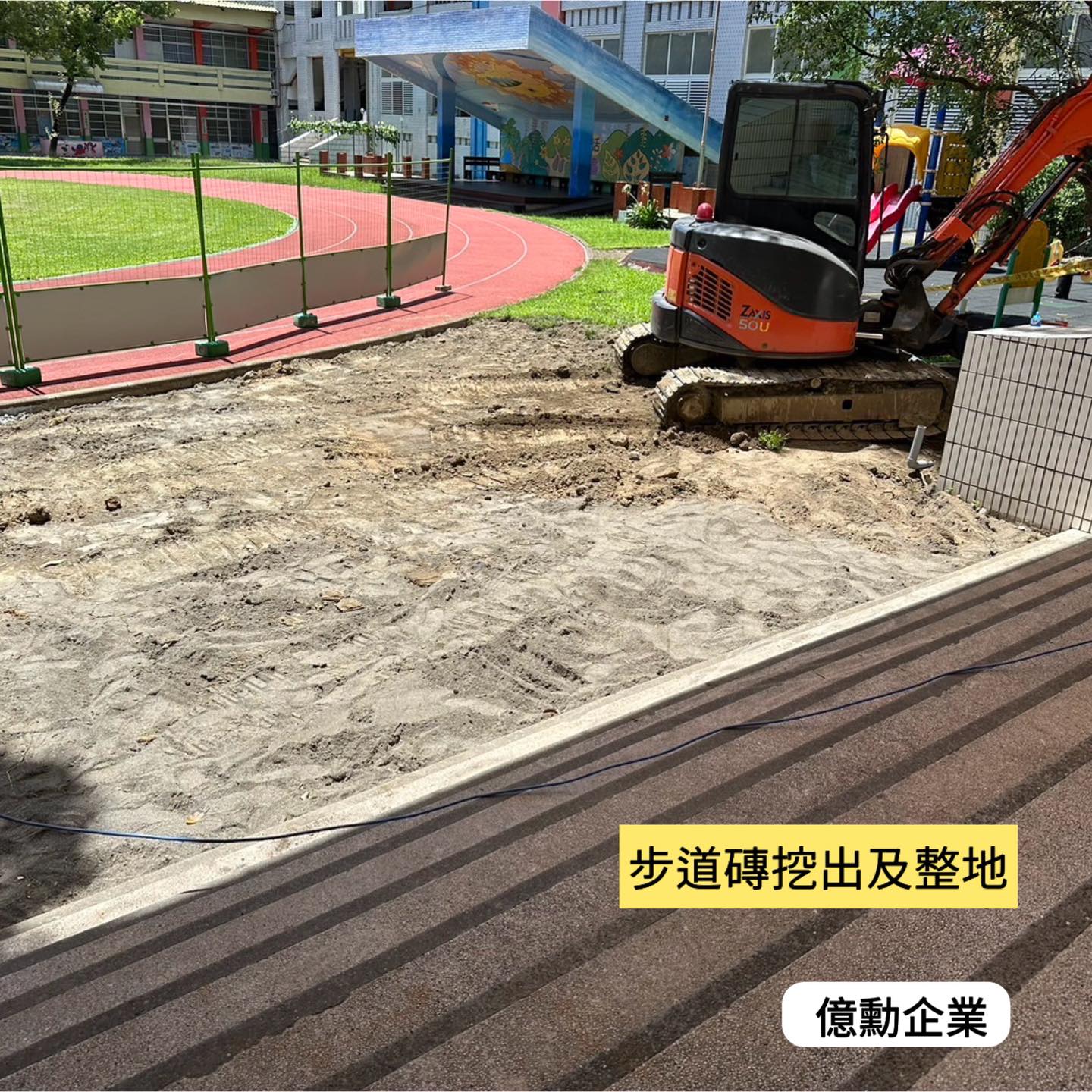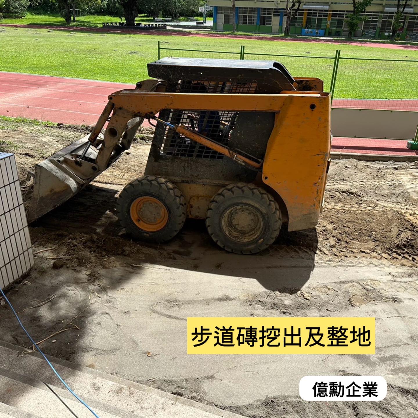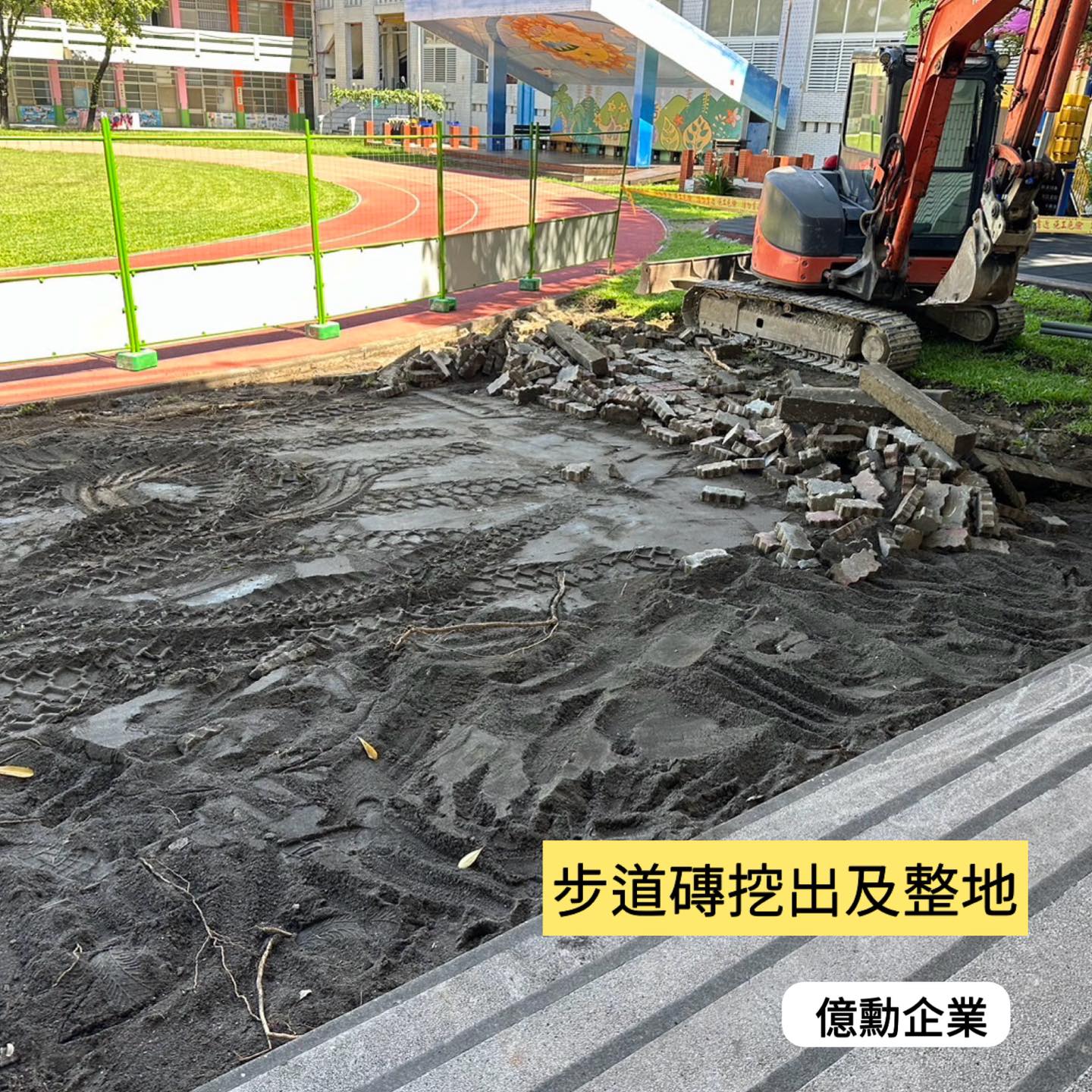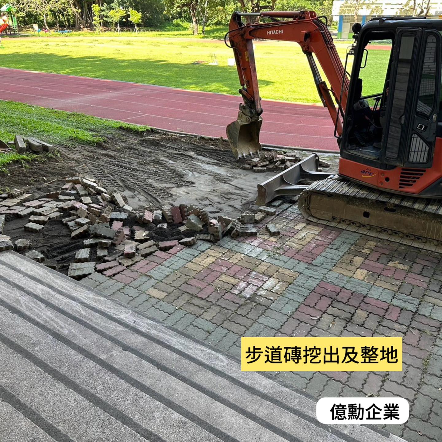 挖土機 地磚挖除、鋪設細石